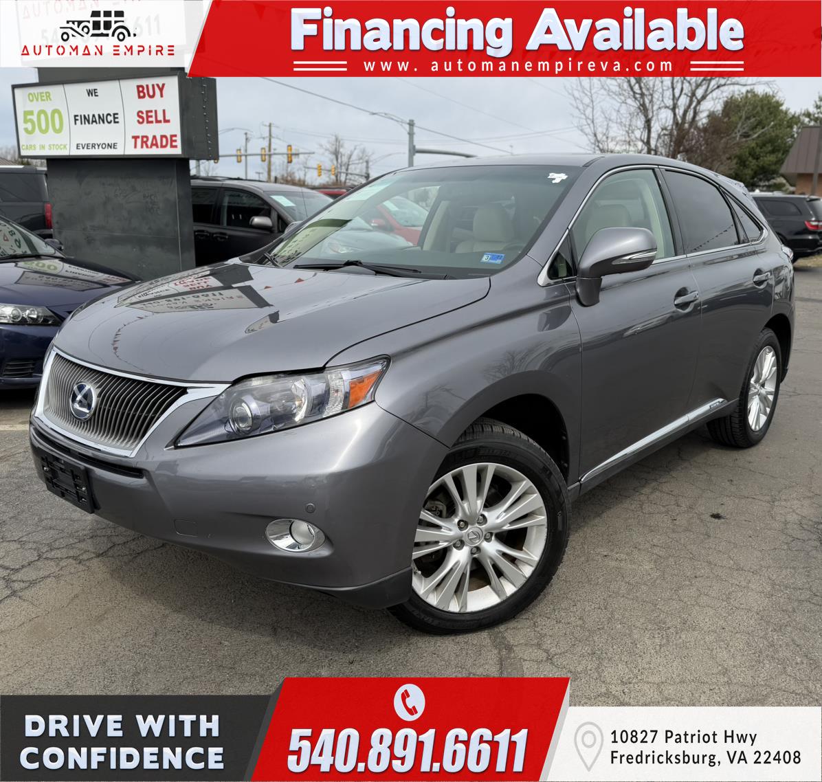 2012 LEXUS RX 450H with powerful 3.5L DOHC SFI 24-VALVE V6 HYBRID -INC VARIABLE engine and driven only 103431 miles! Fully loaded and much more! CARFAX CERTIFIED**FINANCING AVAILABLE** Contact our Sales at 540-891-6611